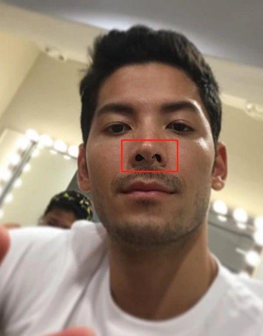 最尴尬的是...他脸上的缺点都集中在鼻子了。大家入眼一看会觉得这不是挺高挺的吗?NO,仔细看,鼻中隔歪,所以大家再看他的自拍,是不是鼻子都有点怪?