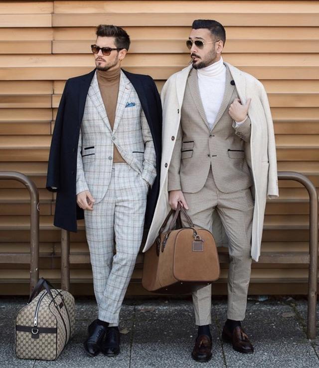 可能会有人疑惑,这些服装凭什么能够互相搭配起来呢?这时候要注意一个关键点,那就是两套西装的面料属性最好相同。是正式西装都选择正式西装,是休闲西装都选择休闲西装,这是两色能够混搭在一起的基础。